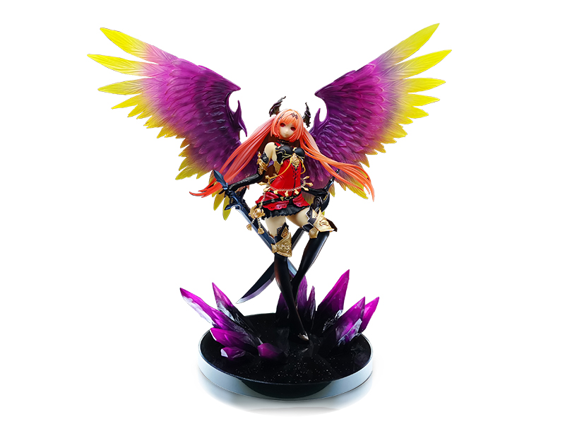 暗黑天使:奧利維亞手辦定制 日期:2019-08-07 10:31:00 分享到: 我想很多人不一定知道誰(shuí)是奧利維亞,她是日本人氣手游“Rage of Bahamut 巴哈姆特之怒”里的角色,14年已經(jīng)TV動(dòng)畫化。第一眼看到此款墮落天使就被其霸氣的翅膀和細(xì)致的造型折服,金祥源能有此做工也算是絕對(duì)的精品了。 我們可以看到整體的細(xì)節(jié)之處特別多:翅膀的分層、羽毛的紋路、繁多的飾品、頭發(fā)的飄逸、鋒利的刀刃、底座的魔法水晶等等,透明和半透明件復(fù)合噴涂,使得游戲中的情景再現(xiàn)。赤紅的雙瞳,精致的臉盤,妖艷的笑容,無一不震撼手辦愛好者的收藏之心。 再來說下身體細(xì)節(jié),首先衣擺邊緣上都有鏤空的設(shè)計(jì),這比起單純的上色來說完全上了一個(gè)檔次,很有質(zhì)感。手臂上的護(hù)甲同樣不含糊,上色及花紋都精美無比, 然后是大家最關(guān)注的面相了,沒有讓我們失望,因?yàn)榇丝盍咙c(diǎn)太多,奧利維亞背后張開那紫金色的天使翅膀,層次分明、精美極致。奧利維亞血紅的的雙眼與可愛的角對(duì)比之下極具美態(tài),藝術(shù)品之稱名副其實(shí)。